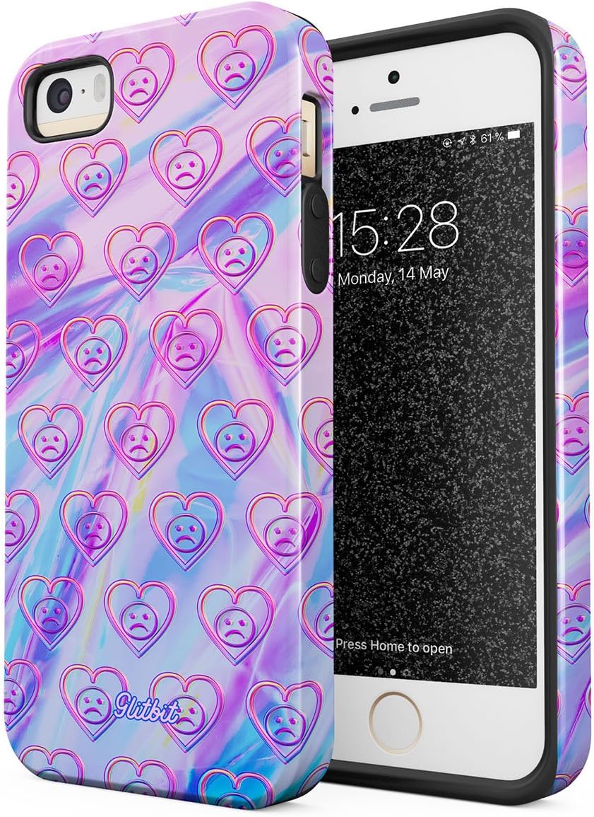 Amazon Com Glitbit Compatible With Iphone 5 Iphone 5s Iphone Se Case Kawaii Emoji Broken Heart Sad Teen Pastel Holographic Aesthetic Pink Emo Goth Shockproof Dual Layer Hard Shell Silicone Protective Cover