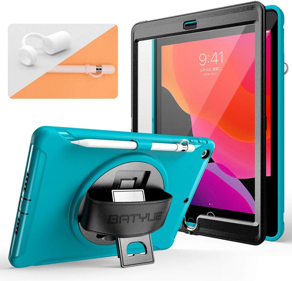 Amazon Com Timecity Ipad 8th 7th Generation Case Ipad 10 2 Case 2020 2019 With Screen Protector Pencil Holder Rotating Kickstand Hand Shoulder Strap Durable Tablet Cover For Ipad 10 2 Inch Black Light Blue Computers Accessories