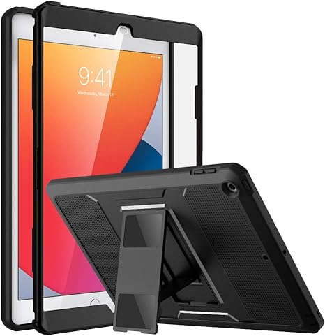 Amazon Com Moko Case Fit New Ipad 10 2 2020 2019 10 2 Inch Heavy Duty Shockproof Full Body Rugged Hybrid Cover With Built In Screen Protector Compatible With Apple Ipad 8th 7th Generation Black Computers