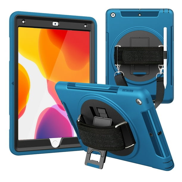 Amazon Com Seymac Ipad 7th Generation Case 2019 360 Rotatable Hand Strap Kickstand Case Full Body Protection Cover With Screen Protector Pencil Holder Shoulder Strap For Ipad 7th Gen Blue Black Computers Accessories