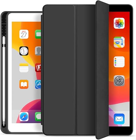 Amazon Com Soke New Ipad 10 2 Case With Pencil Holder Ipad 8th Generation 2020 7th Generation 2019 Case Premium Shockproof Case With Soft Tpu Back Cover Auto Sleep Wake For Apple Ipad 10 2 Black Computers Accessories