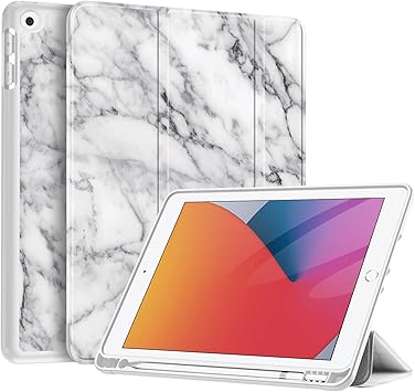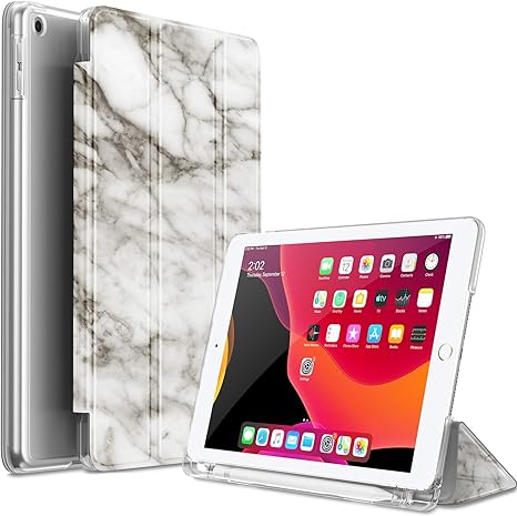 Amazon Com Fintie Slimshell Case For New Ipad 8th Gen 2020 7th Generation 2019 10 2 Inch Built In Pencil Holder Soft Tpu Protective Stand Back Cover With Auto Wake Sleep Marble White Computers
