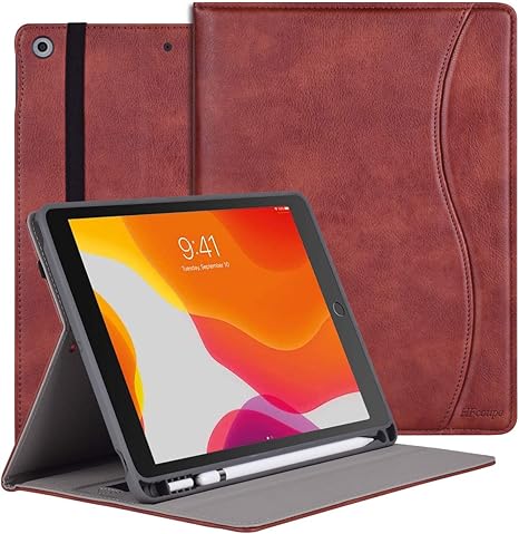 Amazon Com Hfcoupe 10 2 Case For Ipad 8th Gen 2020 Ipad 7th Gen 2019 Premium Multiple Viewing Angles Stand Leather Folio Protective Cover With Apple Pencil Holder Auto Sleep Wake Brown Computers Accessories