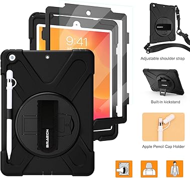 Amazon Com Braecnstock Ipad 10 2 Case 2019 With Pencil Holder Built In Screen Protector Heavy Duty Shockproof With Kickstand Hand Strap Case For Ipad 7th Generation 2019 10 2 Black Computers Accessories