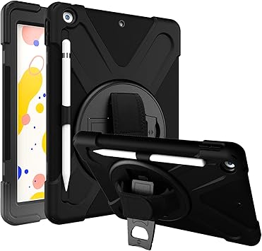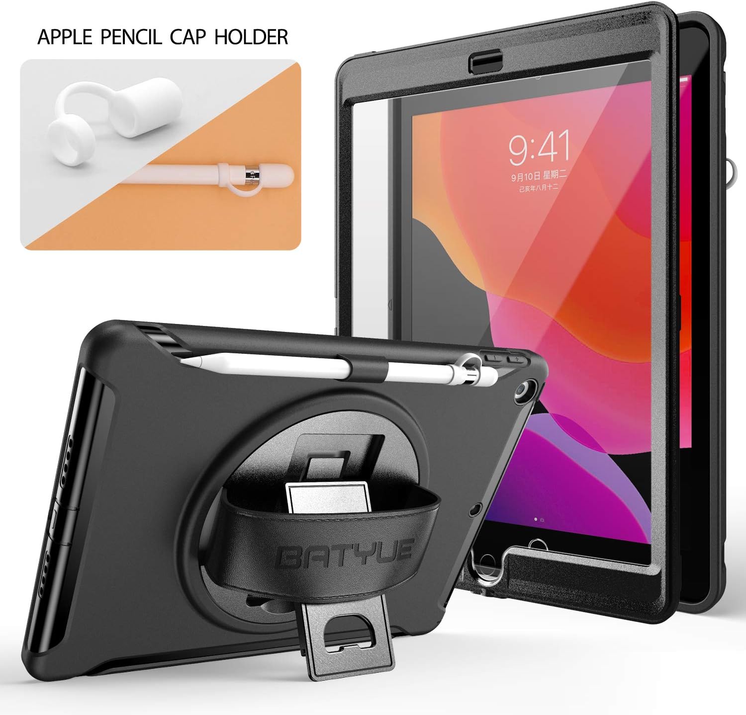 Amazon Com Batyue Ipad 8th 7th Generation Case Ipad 10 2 Case 2020 2019 With Screen Protector Full Body Shock Proof Rugged Case W 360 Swivel Stand Hand Strap Pencil Holder Pencil Cap Holder Black