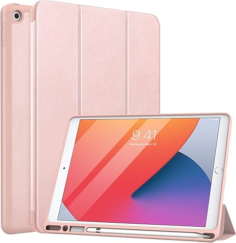 Amazon Com Infiland Ipad 10 2 Inch 2019 Case With Apple Pencil Holder Slim Smart Tri Fold Cover For Apple Ipad 7th Generation 10 2 Inch 2019 Released Tablet Auto Wake Sleep Rose Gold Computers Accessories