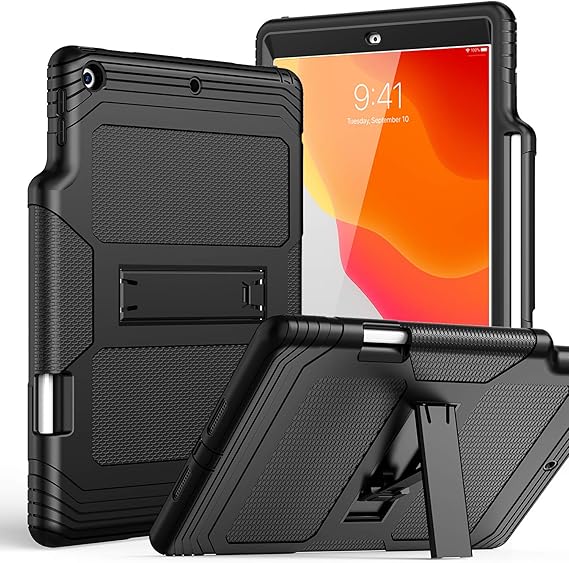 Amazon Com Sevrok Ipad 7th Generation Case Shock Absorber Apple Pencil Holder Super Armor Shell With Kickstand For New Apple Ipad 7th Generation 10 2 Inch 2019 Released Black Computers Accessories