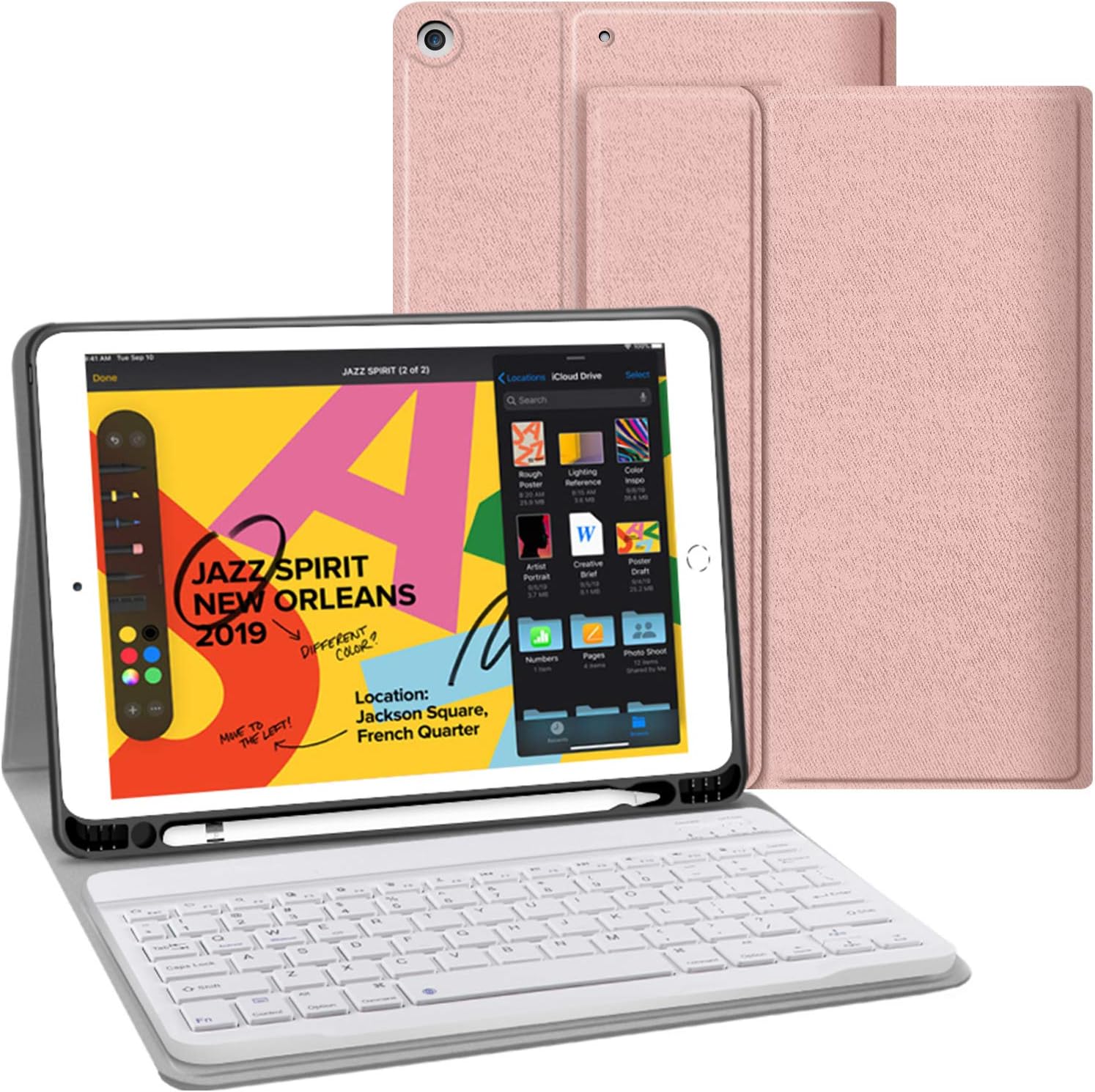 Amazon Com For New Ipad 7th Generation 10 2 2019 Keyboard Case Slim Folio Cover Removable Detachable Wireless Bluetooth Keyboard With Apple Pencil Holder For Ipad 10 2 Inch 2019 Release Rose Gold Computers Accessories