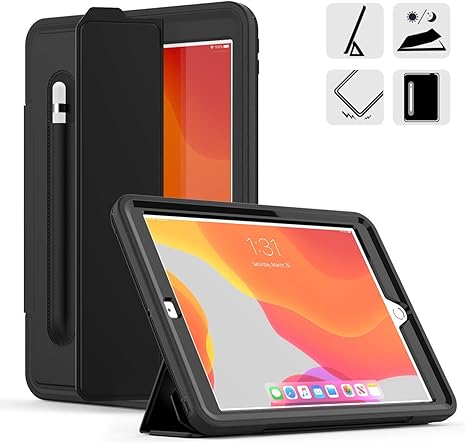 Amazon Com Seymac Ipad 10 2 Case Ipad 7th 8th Generation Case Full Body Protection Rugged Shockproof Case With Pencil Holder Auto Wake Sleep Folio Stand 10 2 Inch Ipad Cover 7th Gen 2019 8th Gen 2020 Black