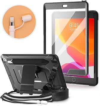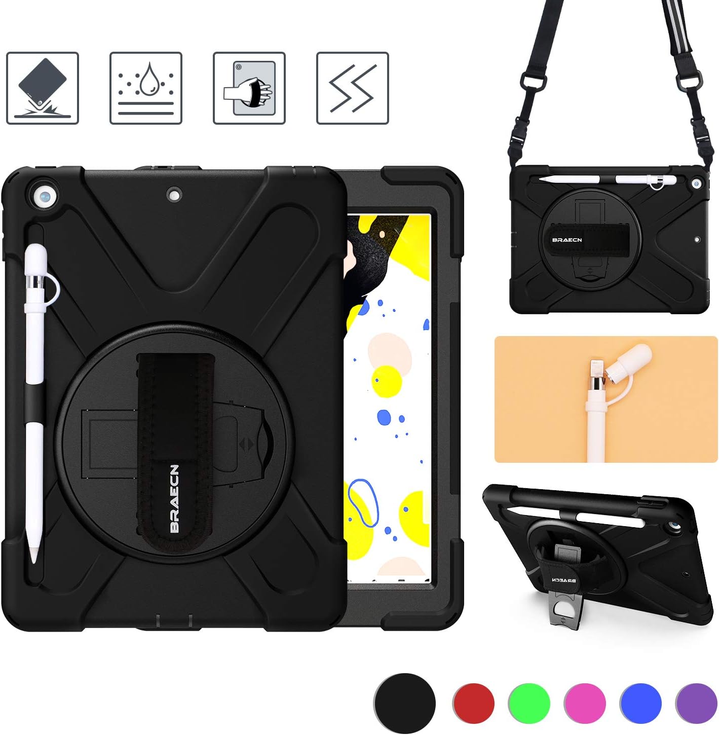Amazon Com Braecn Ipad 10 2 Case 2020 2019 Ipad 8th 7th Generation Case With Pencil Holder Heavy Duty Rugged Shockproof Case With Pencil Cap Holder Hand Strap Kickstand Shoulder Strap Storage Pouch Black Computers Accessories