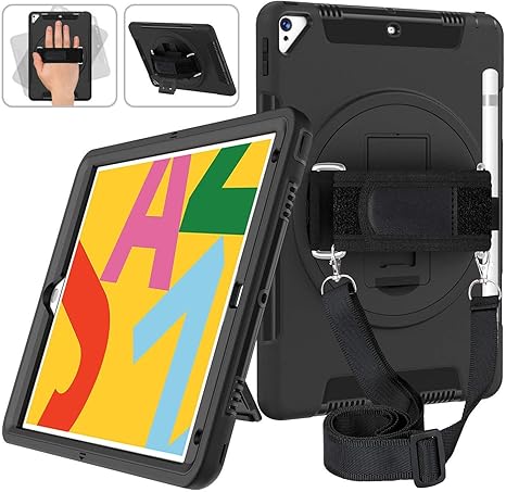 Amazon Com Zenrich New Ipad 8th Generation Case Ipad 7th Generation Case With Pencil Holder Stand Hand Strap And Shoulder Belt Zenrich Case For Ipad 10 2 Inch 2019 Tablet A2197 A2198 A2199 A2200 Black Computers Accessories