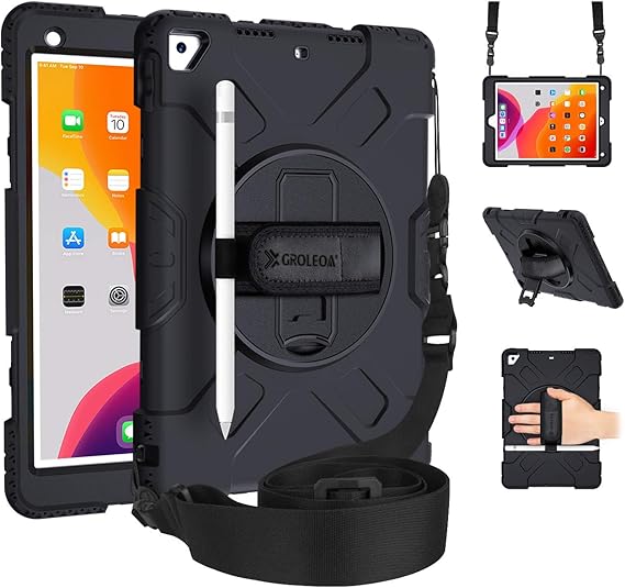 Amazon Com Groleoa Ipad 8th 7th Generation Case Ipad 10 2 Case 2019 2020 With Pencil Holder 360 Rotatable Stand 2 Strap Militarygrade Shockproof Case For Ipad 7th 8th Gen 10 2 Ipad Air 3 Pro 10 5 2017 2019