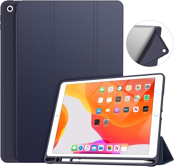 Amazon Com Soke Ipad 7th 8th Generation Case Compatible Ipad 8th Generation 2020 Releases Ipad Case 10 2 Case With Pencil Holder Lightweight Smart Cover With Soft Tpu Back Auto Sleep Wake Navy Blue