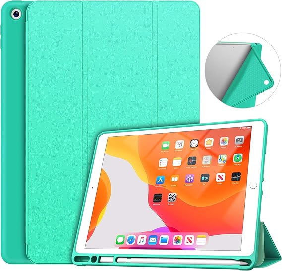 Amazon Com Soke Ipad 7th 8th Generation Case Compatible Ipad 8th Generation 2020 Releases Ipad Case 10 2 Case With Pencil Holder Lightweight Smart Cover With Soft Tpu Back Auto Sleep Wake Mint Green