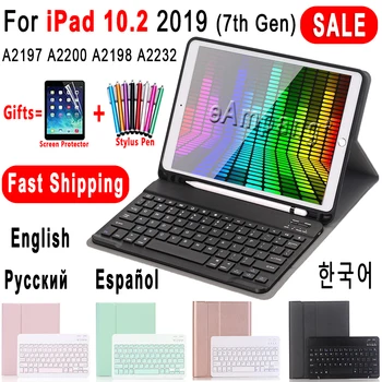 For Ipad 10 2 2019 Keyboard Case With Pencil Holder For Apple Ipad 7th Generation A2197 A2200 Russian Spanish English Keyboard Buy At The Price Of 13 15 In Aliexpress Com Imall Com