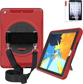 Amazon Com Ipad Air Air 1 Case With Screen Protector And Stylus Heavy Duty 9 7 Case Model A1474 A1475 Hand Strap Shoulder Strap Hardback 360 Rotatable Stand Shockproof Md785ll A Black Computers Accessories