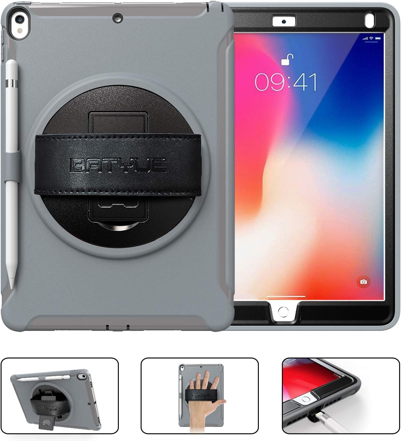 Amazon Com Batyue Ipad Air 10 5 Case 2019 2017 Ipad Pro 10 5 Case With Pencil Holder 360 Swivel Stand Hand Strap Shockproof Drop Protection Case For Ipad Air 3rd Generation Case Black Pencil Not Included