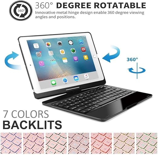 Amazon Com Lenrich Ipad Keyboard Case For 2020 8th Ipad 10 2 7th 2019 2019 Ipad Air 10 5 2017 Ipad Pro 10 5 7 Color Backlight 360 Rotatable Wireless Folio 180 Swivel Cover Auto Sleep Wake Up Black Computers Accessories