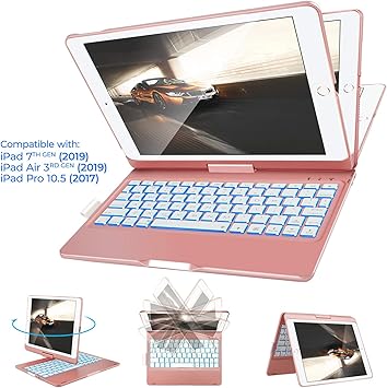Amazon Com Ipad Air 3 Case With Keyboard 10 5 2019 Backlit 360 Rotatable Wireless Ipad Air 3rd Generation Keyboard Case Ipad Pro 10 5 Case With Keyboard Rose Gold Computers Accessories