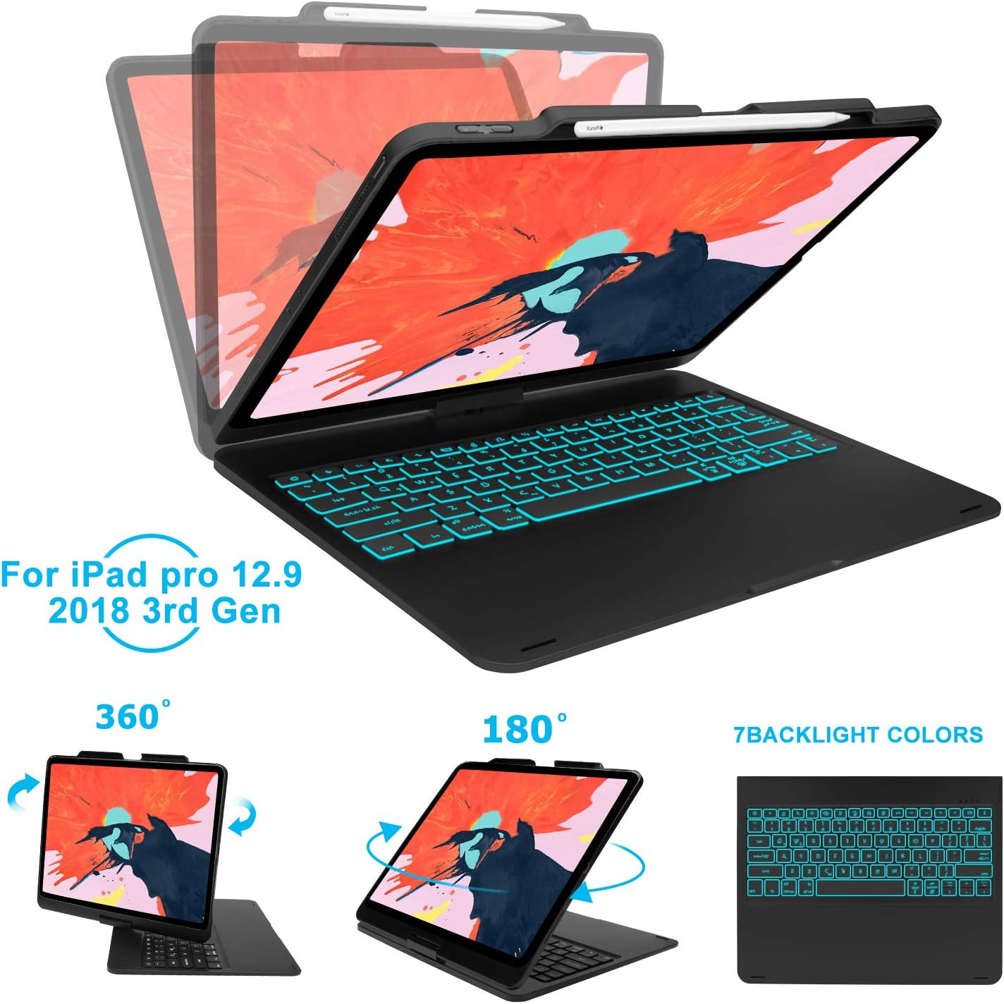 Amazon Com Ipad Keyboard Case For 10 2 Inch Ipad 8th Generation 2020 7th Gen Air 3 Pro 10 5 In 11 Colors 10 Color Backlight 7 Modes 360 Rotatable Slim Protective Cover Apple Pencil Holder Black Computers Accessories