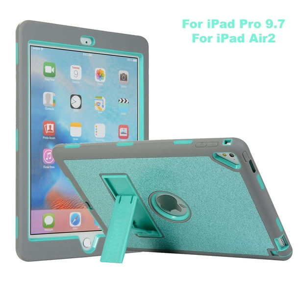 Allytech Ipad Air 2 Case Ipad A1566 A1567 Kids Proof Case Apple Ipad Pro 9 7 Case Three Layer Shockproof Rugged Armor Defender Protective Case Cover With Kickstand Aqua Rosegold Walmart Com Walmart Com