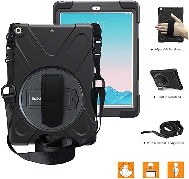 Amazon Com Ipad Air 2 Case Ipad Air 2 Case For Kids Braecnstock Heavy Duty Full Body Rugged Hybrid Protective Case Built In Stand Hand Strap Shoulder Strap For Apple Ipad Air 2nd Generation A1566 A1567 Black Computers