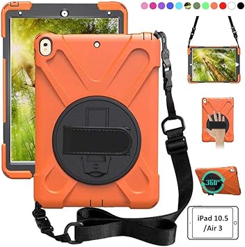 Amazon Com Zenrich Ipad Air 3 Case 2019 Ipad Pro 10 5 Case 2017 360 Rotating Kickstand Hand Strap Shoulder Belt Shockproof Heavy Duty Rugged Case For Ipad 10 5 Inch Tablet 2017 2022 Release Orange Computers Accessories