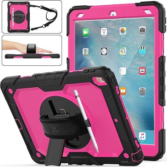 Amazon Com Ipad Air 3 Case Seymac Stock Full Body Drop Proof Armor Case With 360 Rotating Stand Pencil Holder Screen Protector Hand Strap For Ipad Air 3 10 5 2019 Ipad Pro 10 5 2017 Rose Black
