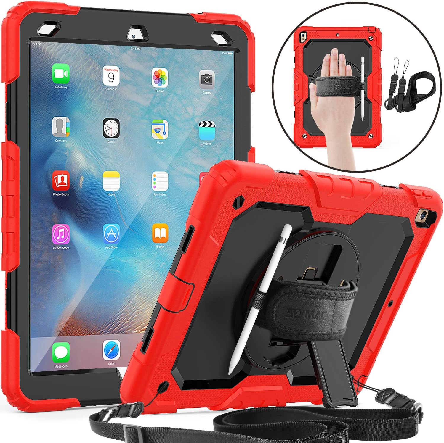 Amazon Com Seymac Ipad 10 5 Air 3 Case Full Body Protection Case With 360 Degree Hand Strap Stand Shoulder Strap Pencil Holder Screen Protector For Ipad Air 3 2019 Pro 10 5 2017 Red Black Computers Accessories