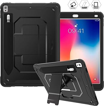 Amazon Com Cwnotbhy Ipad Air 3rd Gen 10 5 2019 Ipad Pro 10 5 2017 Case Heavy Duty Rugged Protective Case With Pencil Holder And Kickstand For Ipad Air 10 5 3rd Generation 2019 Black