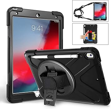 Amazon Com Braecn Ipad Air 3 10 5 Case 2019 Ipad Pro 10 5 Case 2017 Heavy Duty Shockproof Case Cover With Pencil Holder Rotating Stand Hand Strap Carrying Shoulder Strap Fit Ipad Air 3rd Gen Case 10 5 Black