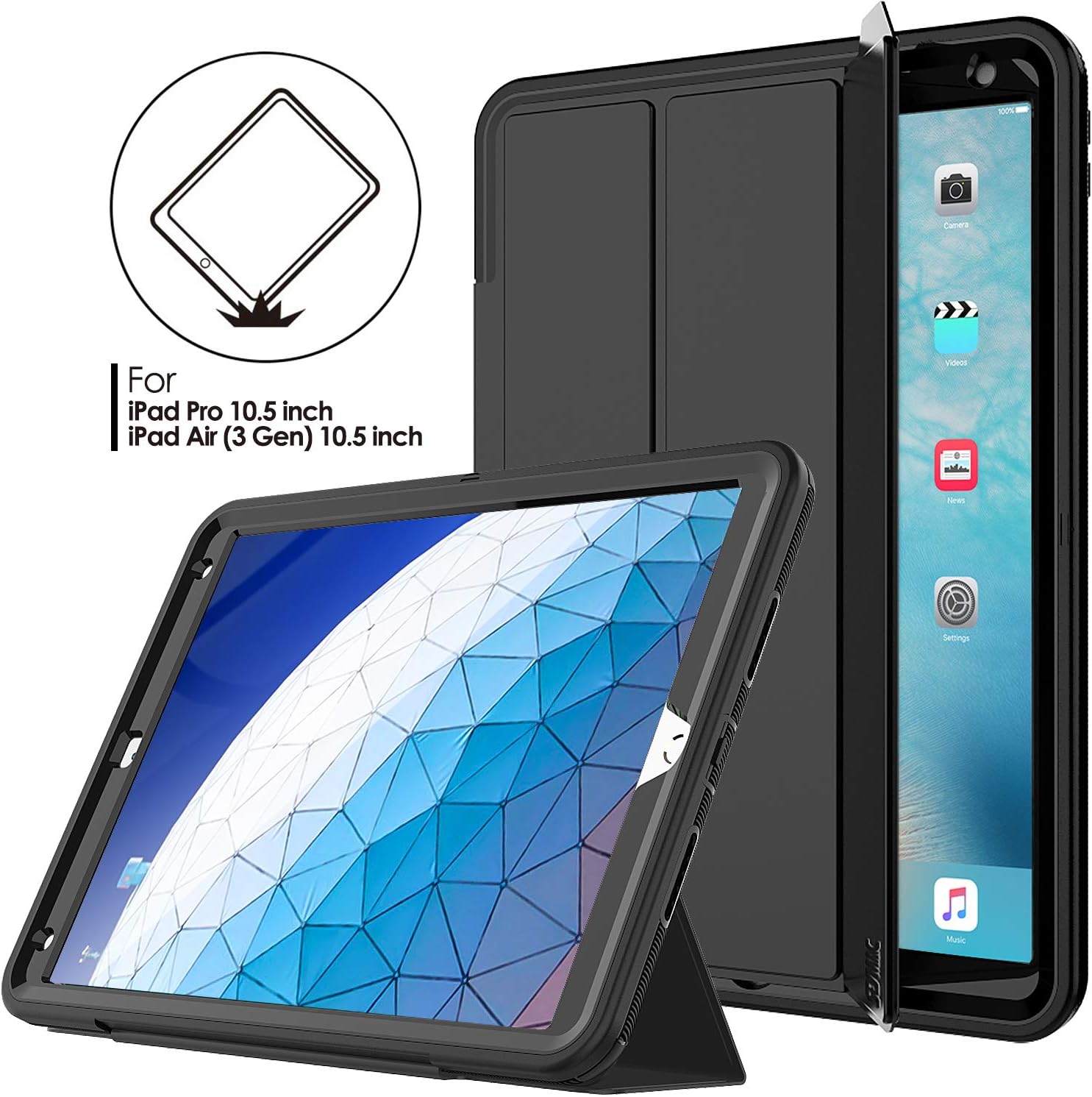 Amazon Com Ipad Air 3 Case Seymac Stock Three Layer Shock Proof Protective Case Smart Cover Auto Sleep Wake Pu Leather Folio Stand Function For Ipad Air 3rd Generation 10 5 2019 Ipad Pro 10 5