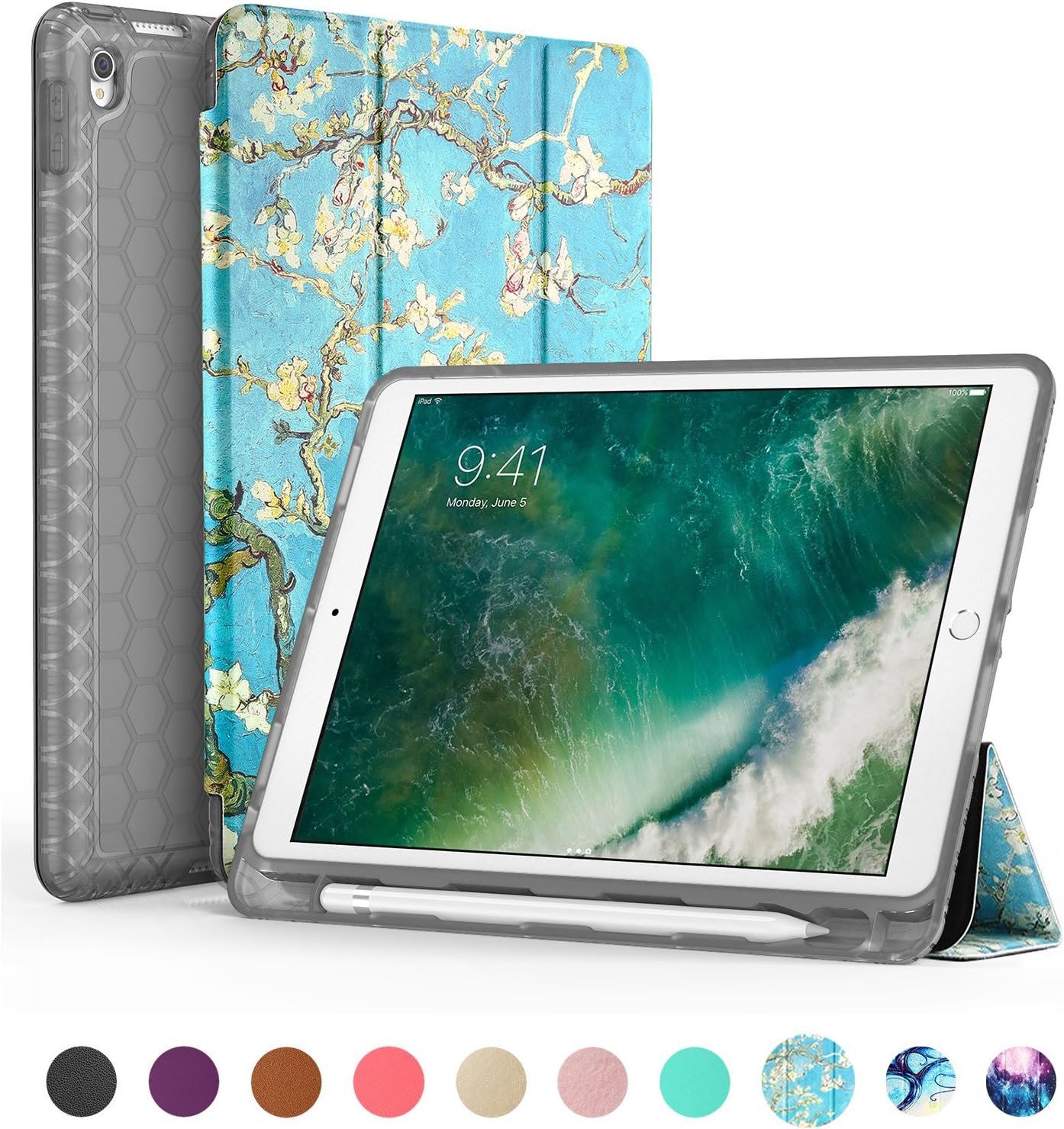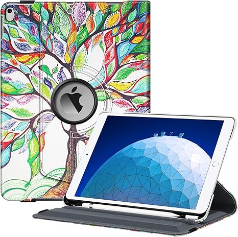 Amazon Com Fintie Case For Ipad Air 3rd Gen 10 5 2019 Ipad Pro 10 5 2017 Corner Protection 360 Degree Rotating Smart Protective Stand Cover With Pocket Pencil Holder Auto Sleep Wake Blossom