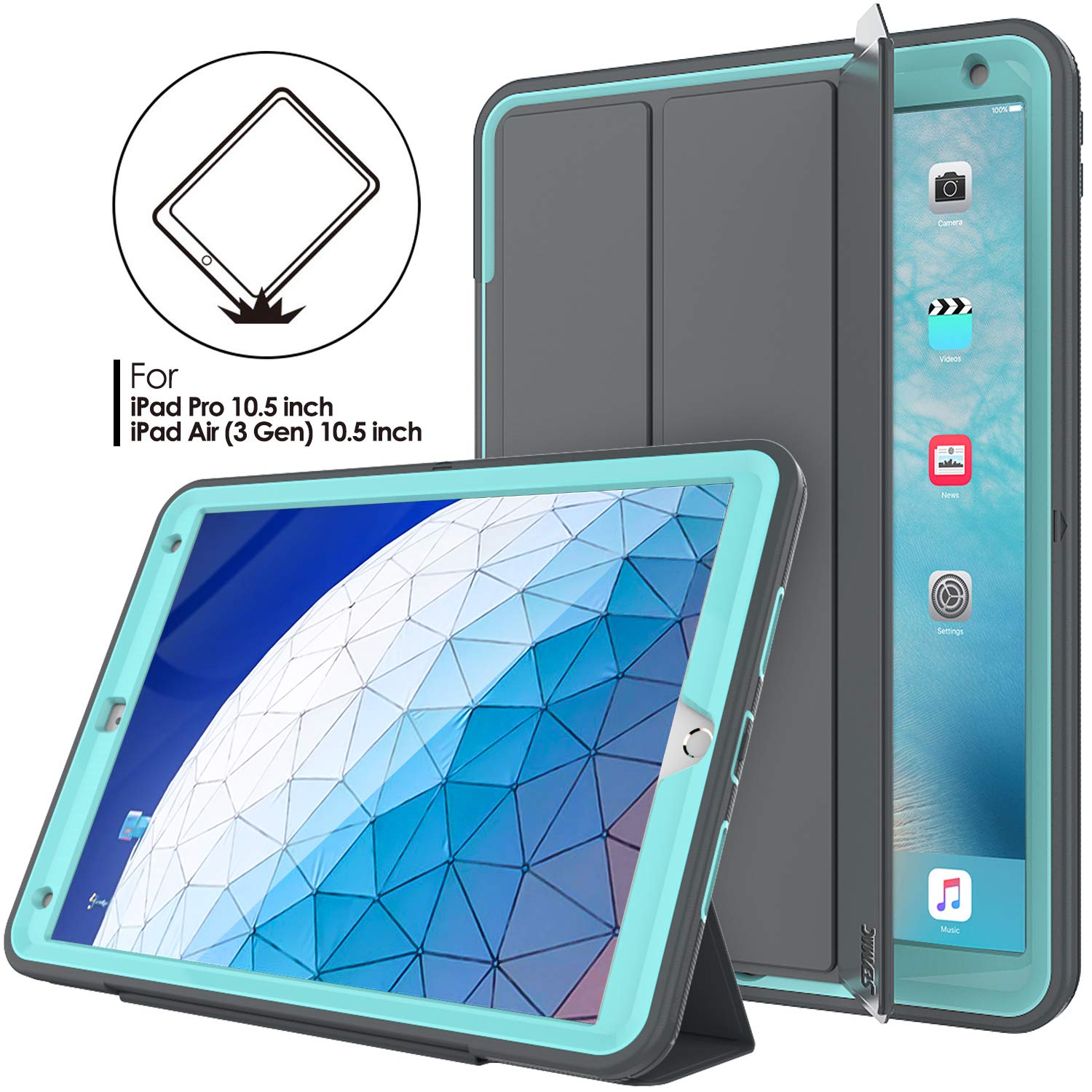 Seymac Stock Ipad Air 3 Case Shockproof Heavy Duty Rugged Leather Stand Protective Case Smart Cover Case With Auto Wake Sleep Function For Ipad Air 3 10 5 2019 Ipad Pro 10 5 2017 Gray Sky Blue