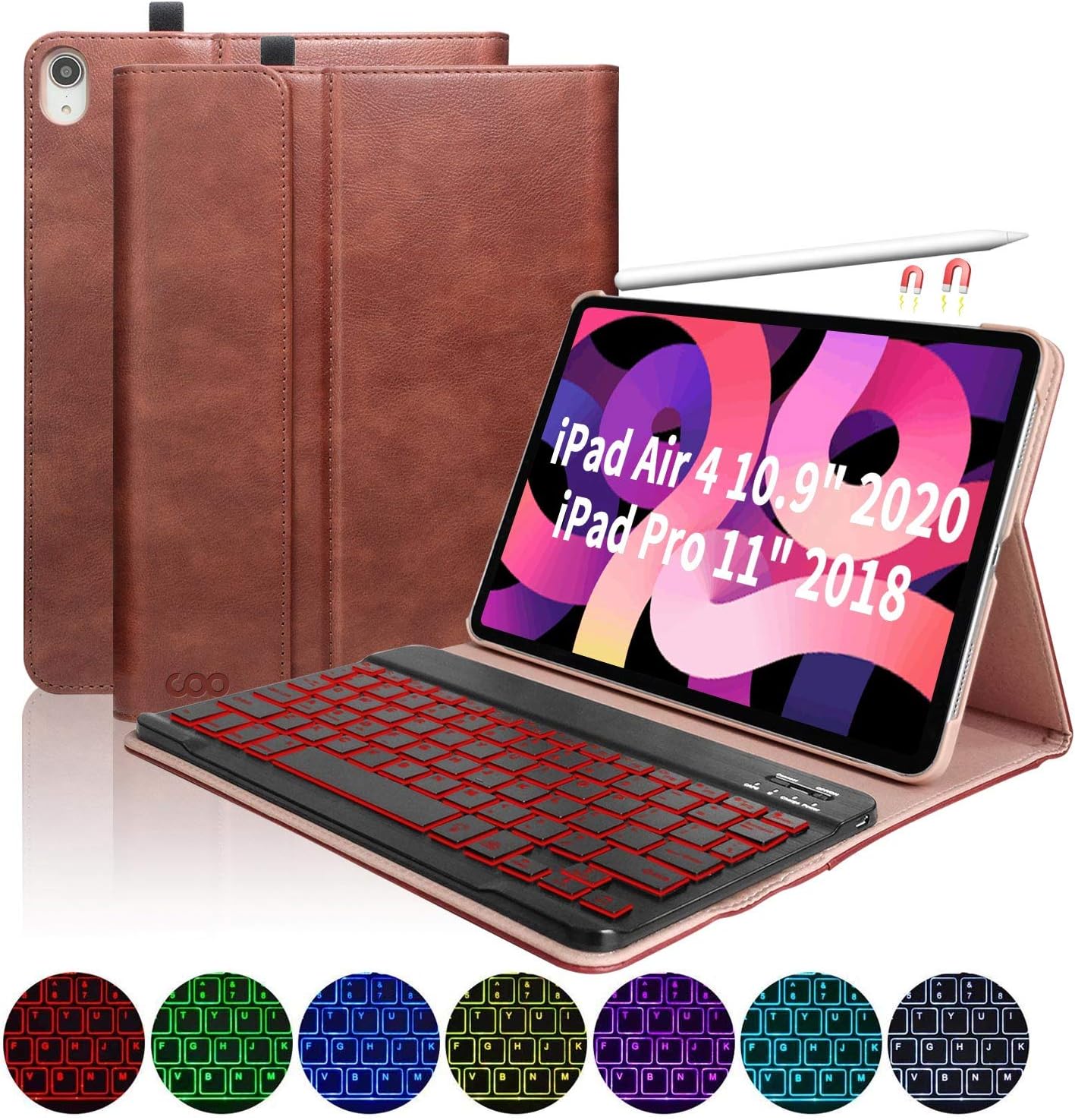 Amazon Com Ipad Keyboard Case For New Ipad Air 4 Generation 10 9 2020 Ipad Pro 11 2018 Leather Pu Sewing Case With Detachable 7 Color Backlit Wireless Keyboard For Ipad Air 4th 2020 Computers Accessories