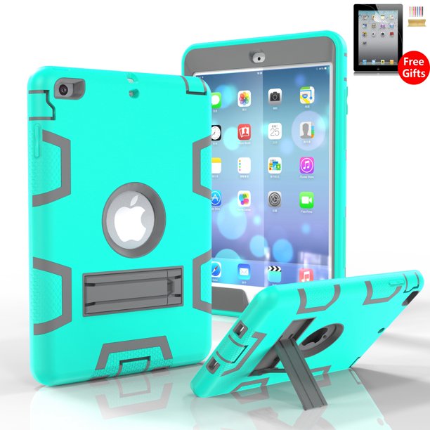 Ipad Mini 1 2 3 Case For Kids Dteck Shockproof Three Layer Protective Cover Shell With Kickstand And Screen Protector For Apple Ipad Mini Mini 2 Mini 3 7 9 Inch Mint Gray Walmart Com Walmart Com