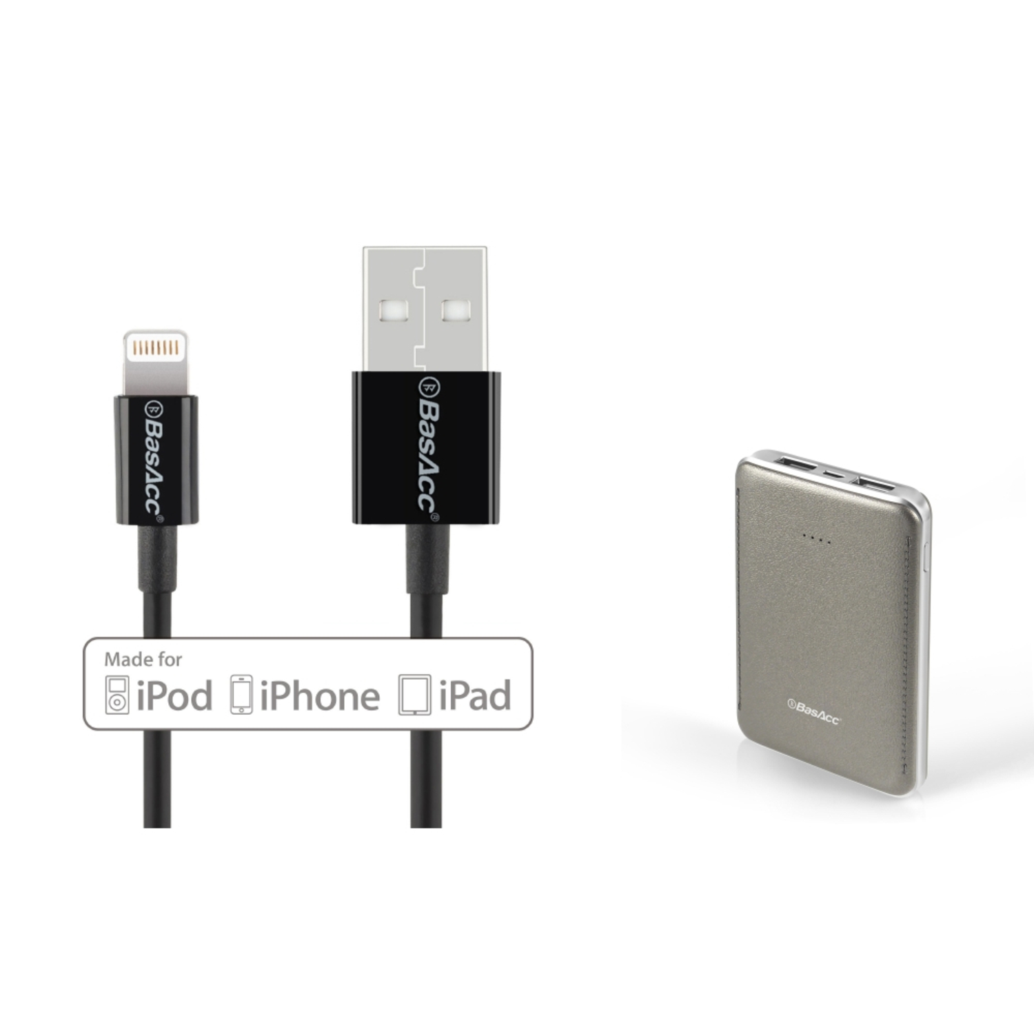 Basacc Gray 6000mah 2 Port Usb Portable Charger Powerbank Power Supply 3 Lightning Cable Apple Mfi Certified For Iphone 7 7 Se 6 6s Plus 6 5s Ipad Mini Air Pro 2 In 1