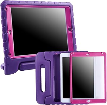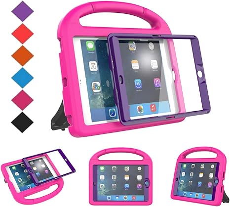 Amazon Com Hde Case For Ipad Mini 1 2 3 Kids Shockproof Bumper Hard Cover Handle Stand With Built In Screen Protector For Apple Ipad Mini 1st 2nd 3rd Generation Purple Pink Computers