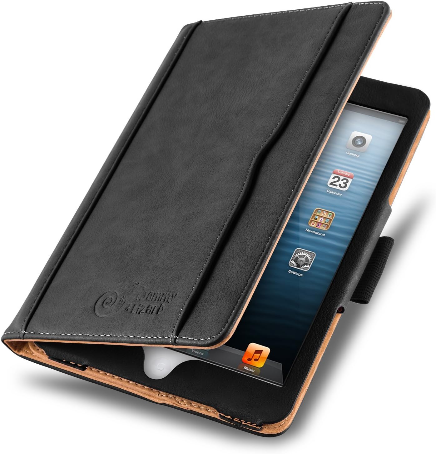 Amazon Com Ipad Mini 4 3 2 And 1st Generation Case Jammylizard The Original Black Tan Leather Smart Cover With Pencil Holder Stylus Computers Accessories
