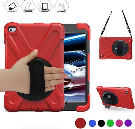 Breacn Ipad Mini 5 Case Ipad Mini 4 Case Heavy Duty Shockproof Protective Rugged Case With Pencil Holder Hand Strap Kickstand Shoulder Strap For Ipad Mini 5th 4th Generation 7 9 Inch For Kids Red