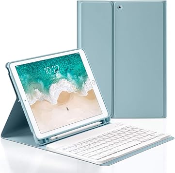 Amazon Com Bluetooth Keyboard Case For Ipad Mini4 5 7 9inch Wireless Detachable Ipad Keyboard Case With Pencil Holder Blue Computers Accessories