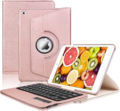 Amazon Com Ipad Mini 5 Mini 4 Keyboard Case 7 Colors Backlit 360 Rotate 180 Flip Wireless Smart Folio Auto Sleep Wake Hard Cover Fit Ipad Mini 5 2019 5th Gen Ipad Mini 4 2015 Rosegold Computers Accessories