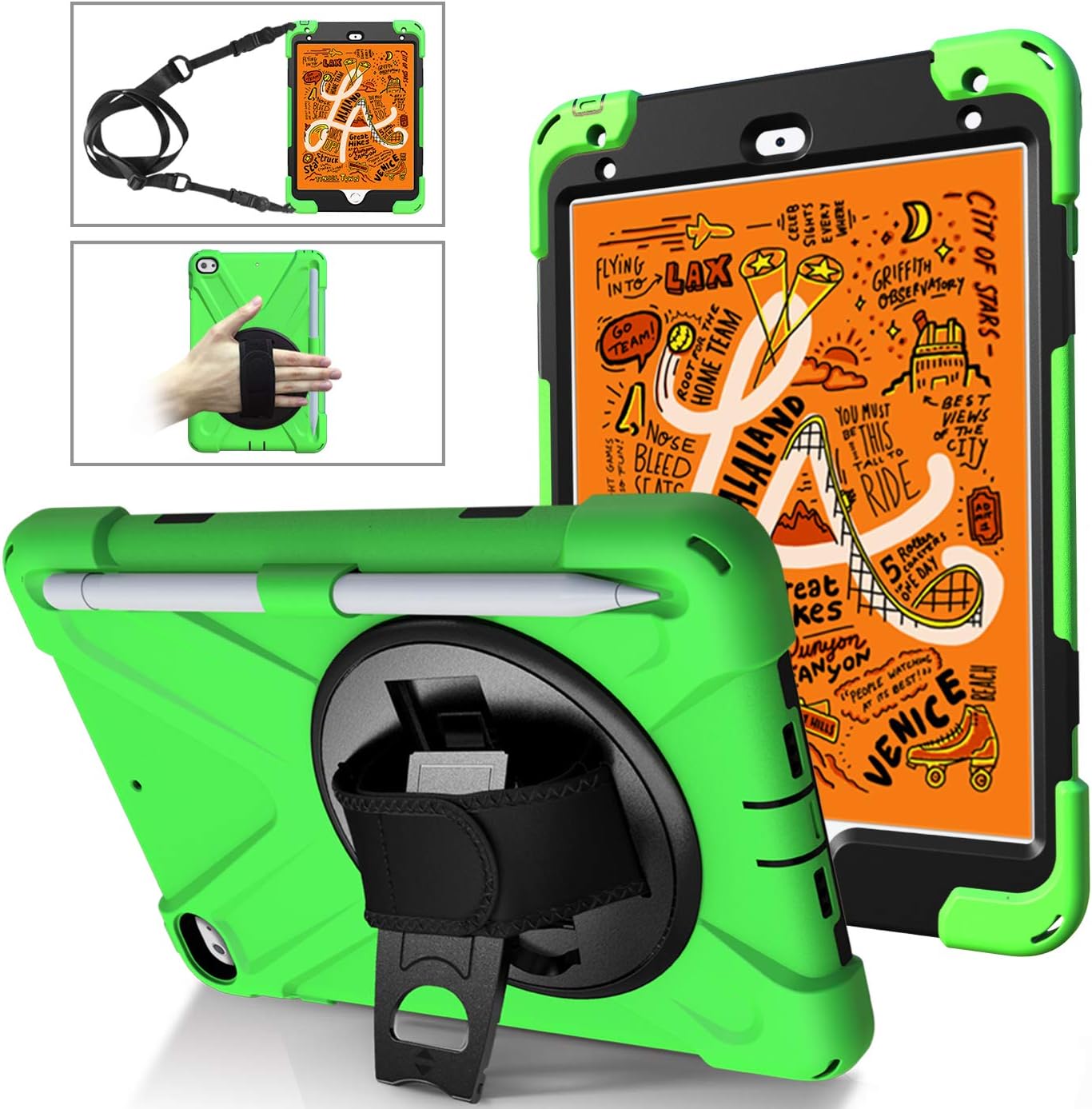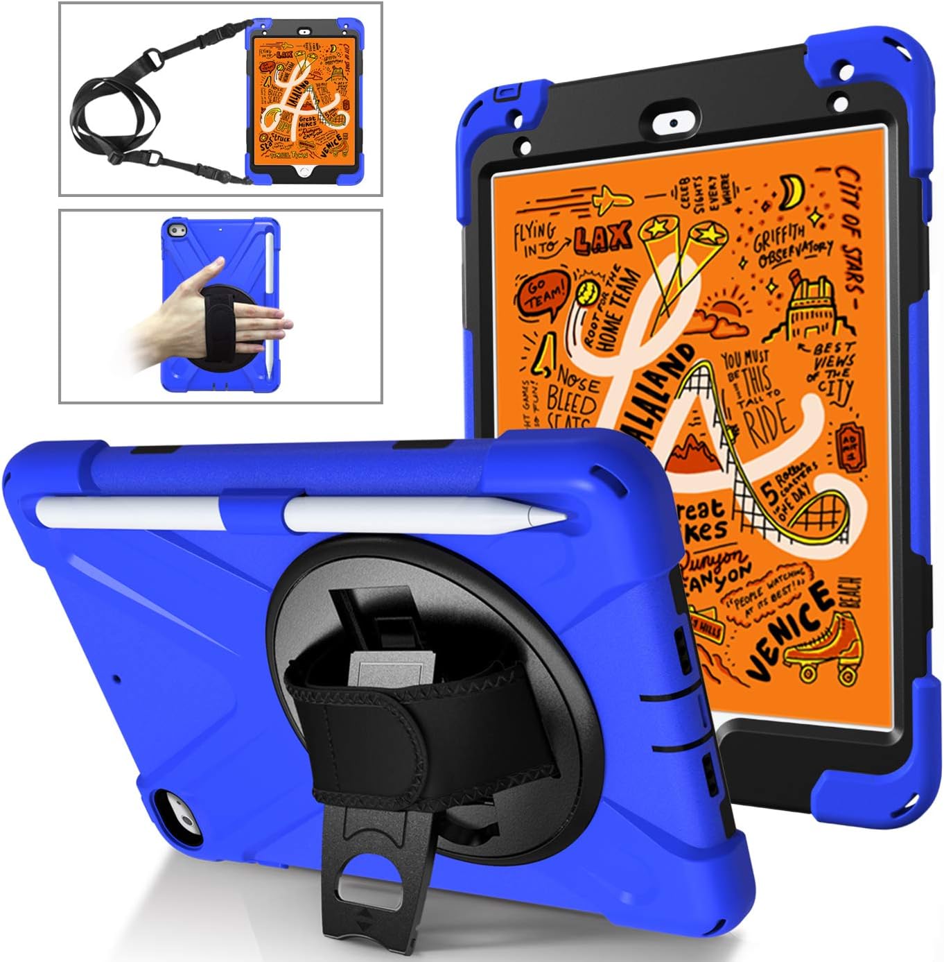 Amazon Com Herize Ipad Mini 5 4 Case With Handle Hand Strap Drop Protection Hybrid Armor Ipad Case With Pencil Holder Swivle Kickstand Carring Shoulder Strap For Ipad Mini 5 2019 Ipad Mini 4 2015 For Kids Blue
