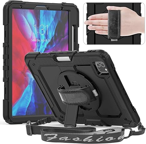Amazon Com Timecity Compatible With Ipad Pro 11 Case 2020 2018 Ipad 11 Case With Built In Screen Protector Pencil Holder Wireless Pencil Charging Rotating Handle Strap Kickstand Shoulder Strap Black Computers Accessories