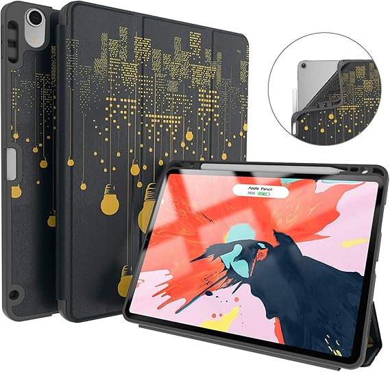 Amazon Com Soke Ipad Pro 11 Inch 2018 Case With Pencil Holder Premium Trifold Case Strong Protection Apple Pencil Charging Supported Auto Sleep Wake Soft Tpu Back Cover For Ipad Pro 11 Shiny Cityscape