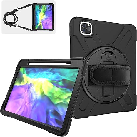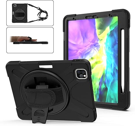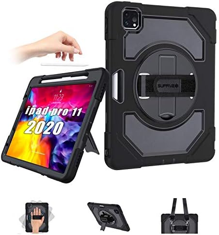 Amazon Com Supfives Ipad Pro 11 Case 2020 With Strap And Pencil Holder Support Pencil Charging Pairing Hand Strap Shoulder Strap Stand Heavy Duty Shockproof Case For Ipad Pro 11 Inch 2020 2nd Generation Black