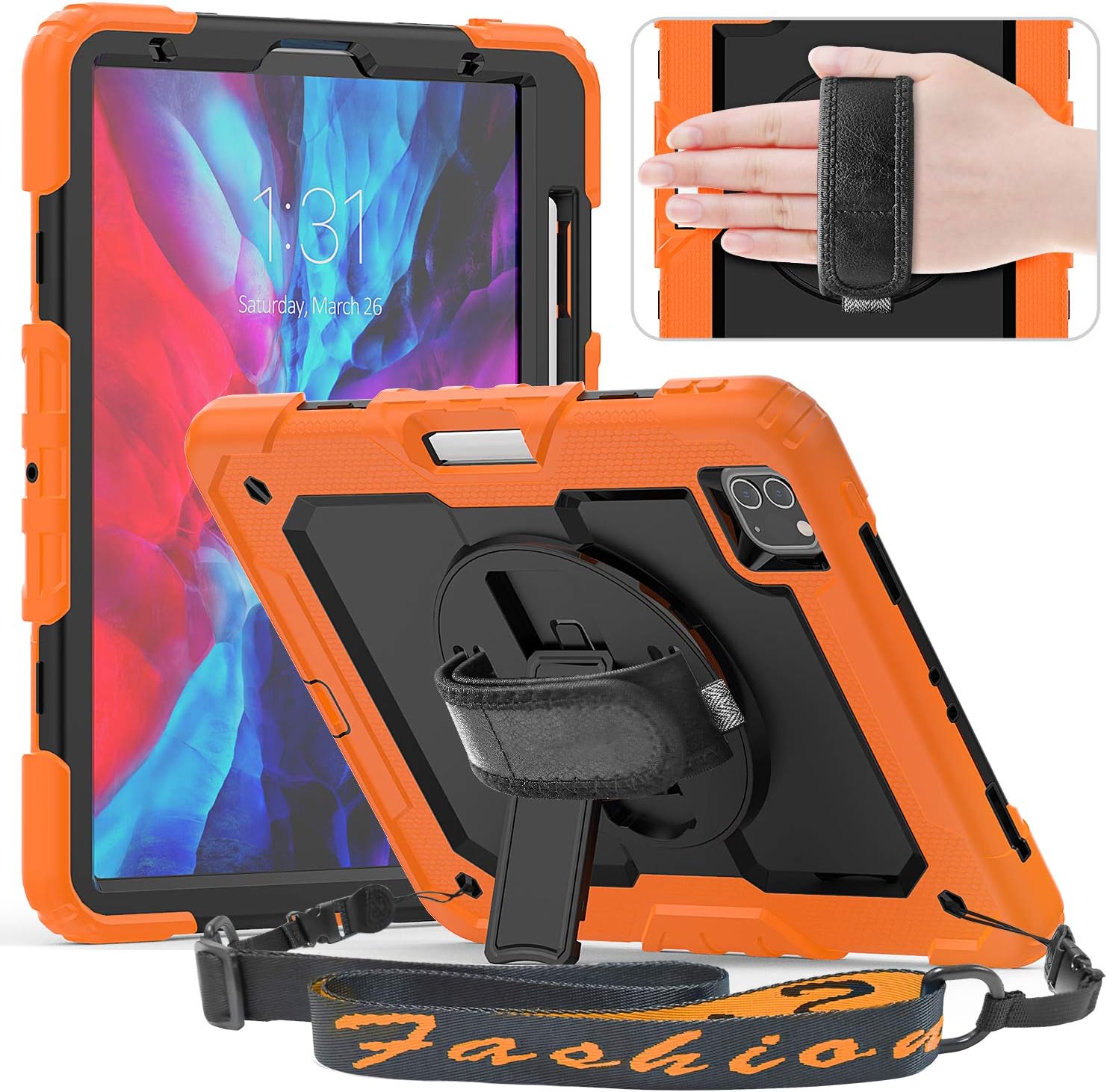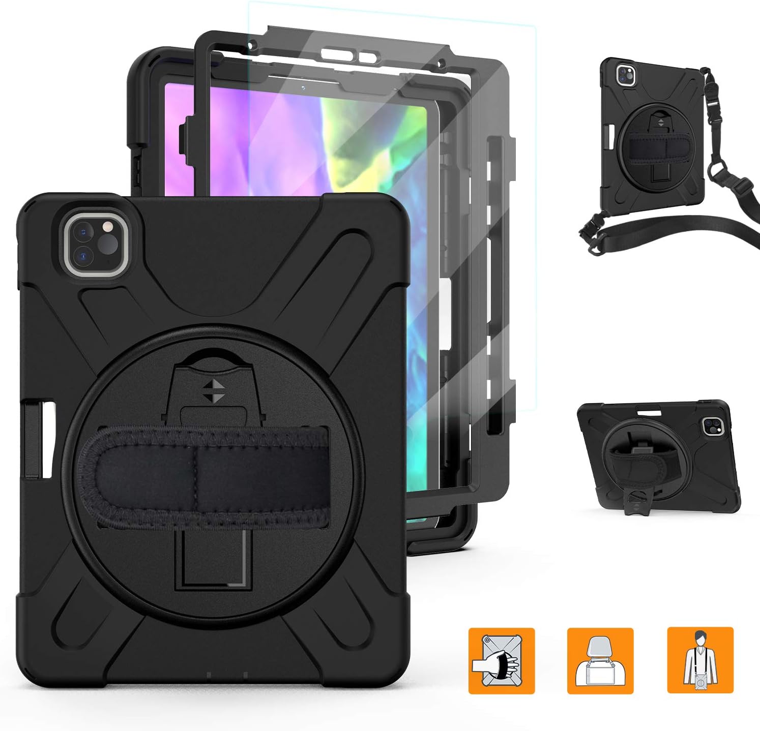 Amazon Com Timecity Case Compatible With Ipad Pro 11 2020 2nd Generation Ipad 11 Case With Screen Protector Pencil Holder Wireless Pencil Charging Rotating Handle Strap Kickstand Shoulder Strap Orange Computers Accessories