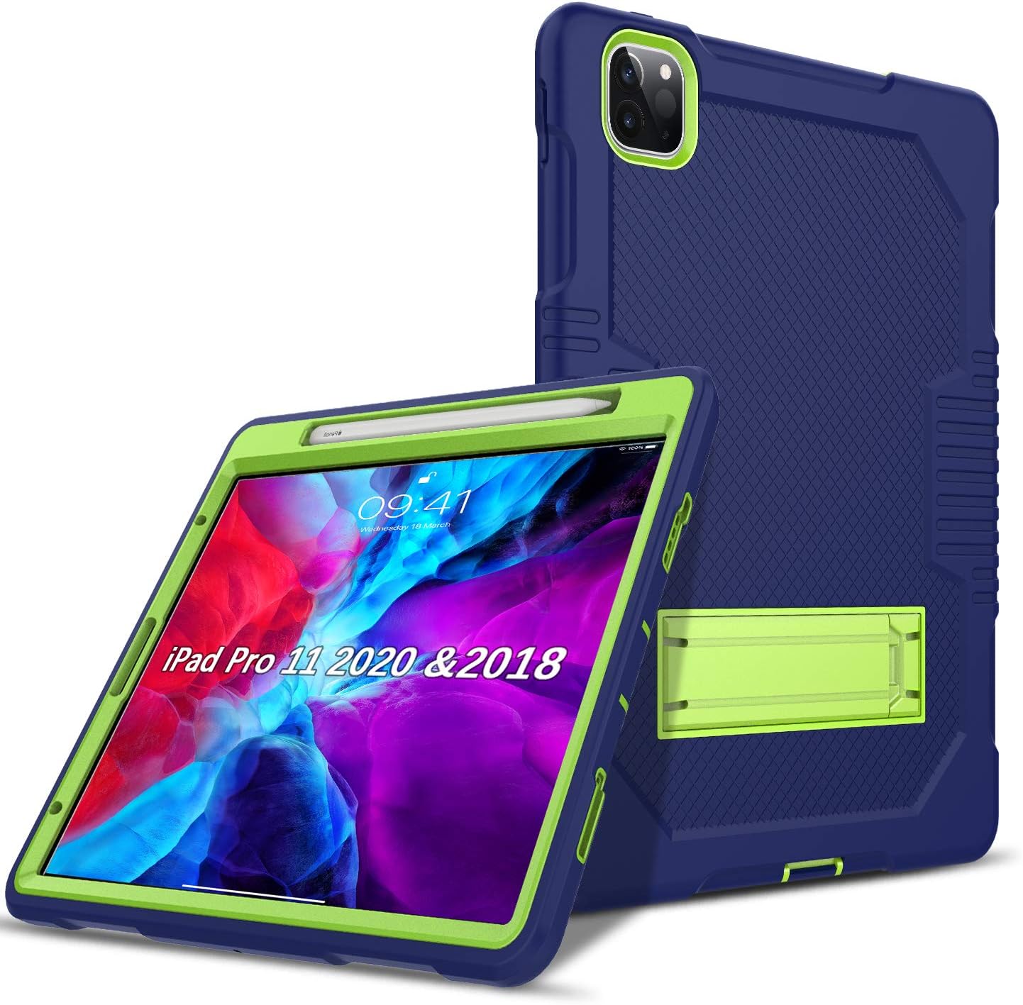 Amazon Com Bentoben Ipad Pro 11 Inch Case 2020 2nd Generation Ipad Pro 11 Case 2018 Heavy Duty Shockproof Three Layer Hybrid Protective Tablet Case Cover With Kickstand And Pencil Holder Navy Blue Green