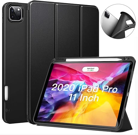 Amazon Com Soke Ipad Case Pro 11in 2020 With Pencil Holder New Ipad Case 11 Inch Lightweight Smart Cover With Soft Tpu Back Apple Pencil Charging Auto Sleep Wake For Ipad Gen 2020 Black White
