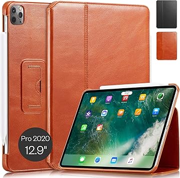 Icarer Ipad Pro 12 9 Inch 2020 Handcraft Vintage Style Genuine Leather Slim Folding Case Brown